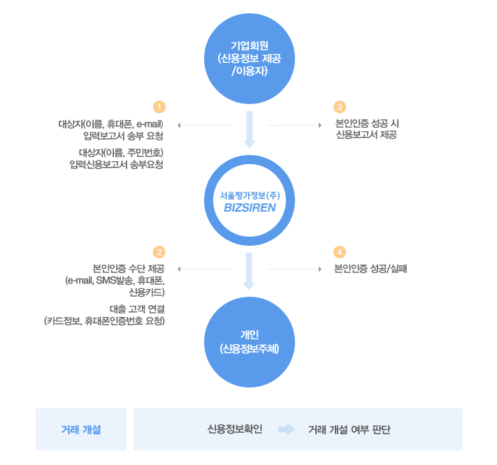 금융거래 및 상거래 등에 있어서 조회 대상자의 본인인증 방식으로 신용정보 제공 동의에 의해 요청 해당 업체로 전송이 되는